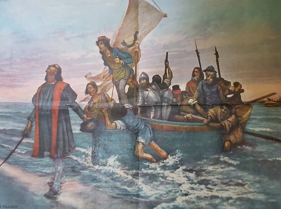 Monumento a Colón, tan majestuoso, que elevándose, en medio de la plaza, a todos, nos convoca y nos abraza, de un modo fraternal y fervoroso. Baluarte del ayer, claro y glorioso, que allí, de pie, mientras la gente pasa, nos relata su historia y nos enlaza, a otro cielo, lejano y luminoso… Artística expresión, gran monumento, testimonio de antiguo sentimiento, y símbolo de unión americana… Desde hace mucho tiempo, el Almirante, con su larga visión, mira adelante, soñando un Mundo Nuevo, del mañana.